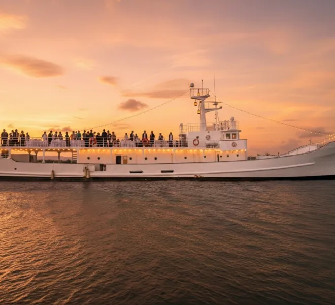 This isn’t about ultra-luxury, it’s about the experience. A good one. You’ll have a buffet-style meal with a choice of dinner or cocktail dishes, taken care of by professional waiters for seamless dining, so you don’t have to think about anything once you’re on board. The vibe picks up with a professional lights and sound system, and drinks keep flowing thanks to the unlimited mobile bar service with a skilled bartender. Whether you are planning a corporate gathering, a milestone birthday, an engagement party or a wedding,it’s the kind of setting people remember.
